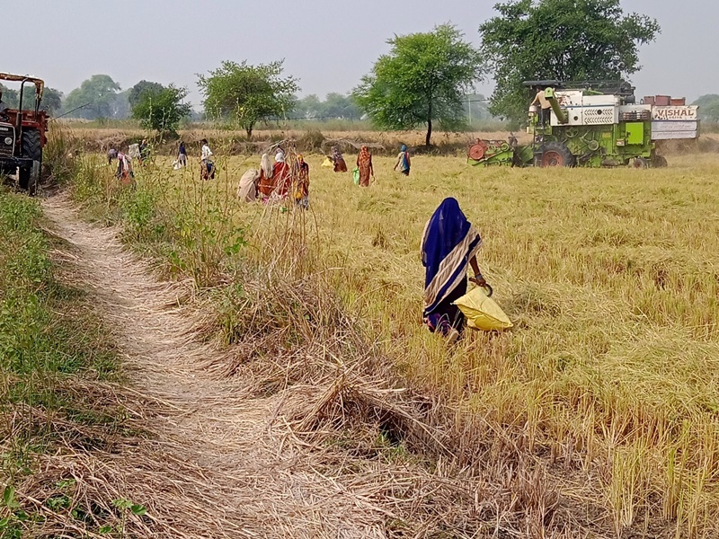 ग्रामीण क्षेत्रों में हार्वेस्टर से कटाई के दौरान बालियों के बीनने से किसान और ड्राइवर दुर्घटना की आशंका से परेशान हैं।